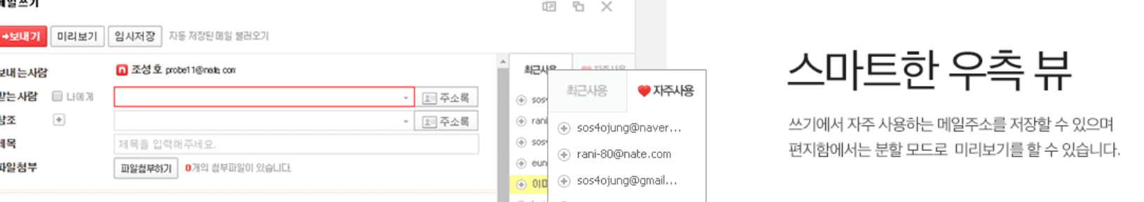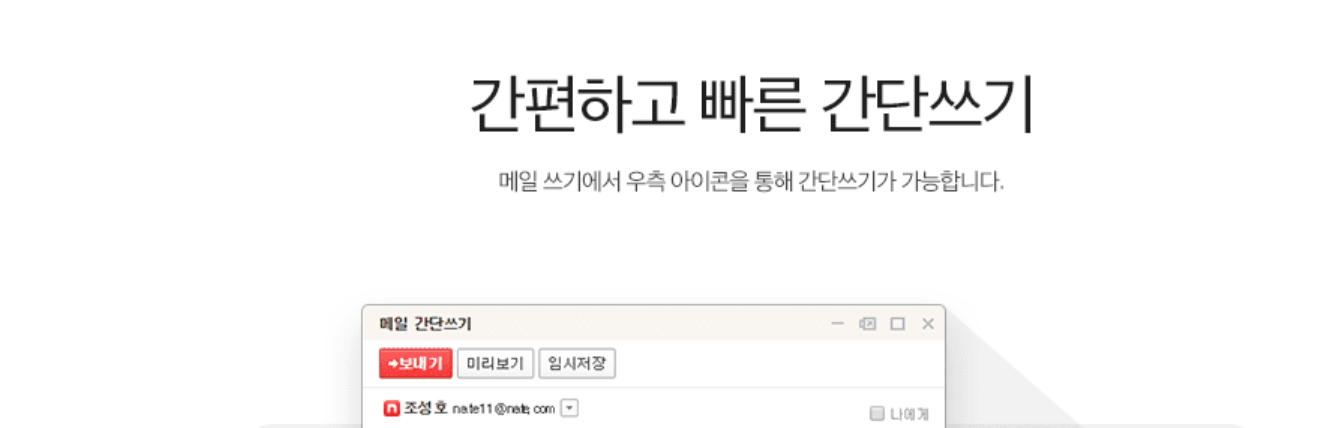 특히나 간편하게 간단 쓰기는 진짜로 네이트 메일에 특 장점이라고 할 수가 있습니다. 그리고 다음 메일이라든지 네이버 메일 등등에 비교해서도 빠르게 받아 볼 수가 있어서 전 아직도 잘 쓰고 있습니다.