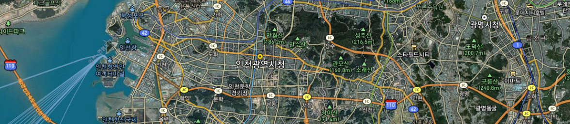 기본 카카오 맵으로 들어오셨다면 다음 지도 바로 옆에 보이는 스카이뷰라는 메뉴를 선택해주시면 인공위성에서 찍은 지도 모양으로 바뀌게 됩니다. 즉 위성지도 모습이죠. 그러면 어떻게 가능한지 확인해볼까 합니다. 아래와 같은 비행기 노선도 및 다음지도 스카이뷰[인공사진] 모습이 그대로 보이고 휠을 당기면 확대가 되는 등 보여지기 가능합니다.