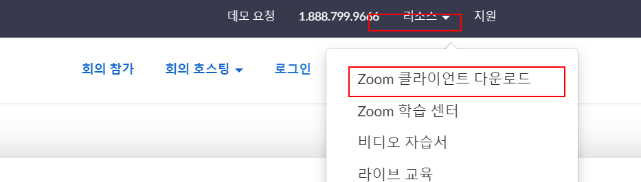 내가 줌 클라우드 미팅 다운로드 할려면 리소스 부분을 선택이후에 zoom 클라이언트 다운로드 선택하시면 됩니다. 방법이 너무나 쉽죠.
